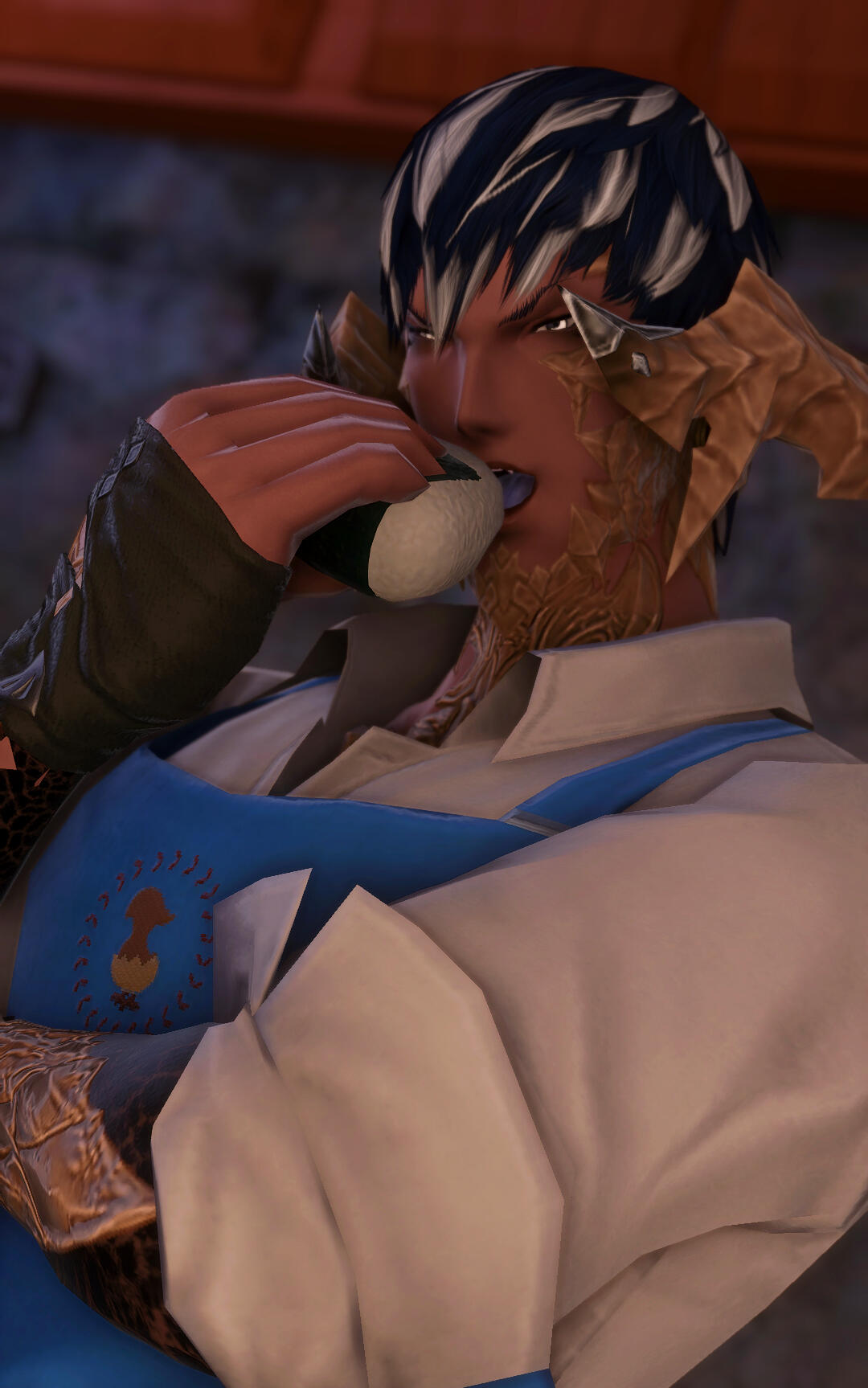 Lazarous Tranebere, an Ishgardian refugee who found a home in Gridania. In his free time, he finds joy in volunteering at a local soup kitchen, offering warm meals to those in need. Learning about Ashleigh's new venture, Lazarous eagerly joins forces with her, utilizing his natural talents to gather fresh ingredients. Together, they create a place where people not only find nourishment but also a sense of belonging and hope, reminding the community of the transformative power of kindness and compassion.